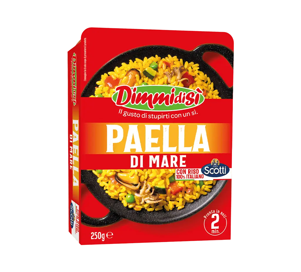 estrai la vaschetta dal cartoncino, fora la pellicola e scalda per 2 minuti a 900W (no grill). Togli la pellicola e gustati la paella.