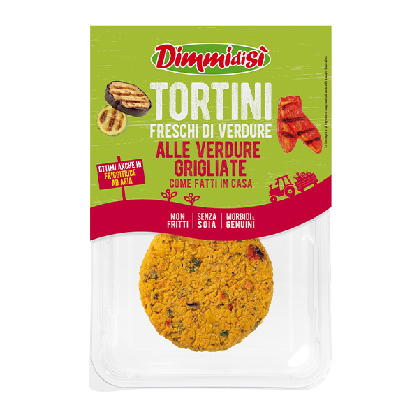 Verdure 70% (ortaggi in proporzione variabile: patate, zucchine, carote, cipolle), verdure grigliate 16% (ortaggi in proporzione variabile: melanzane, zucchine,peperoni), pane grattugiato (farina di grano tenero tipo "0", acqua, sale, lievito), olio di semi di giraole, olio extravergine di oliva, pianta aromatica, sale, aglio (contiene solfiti).