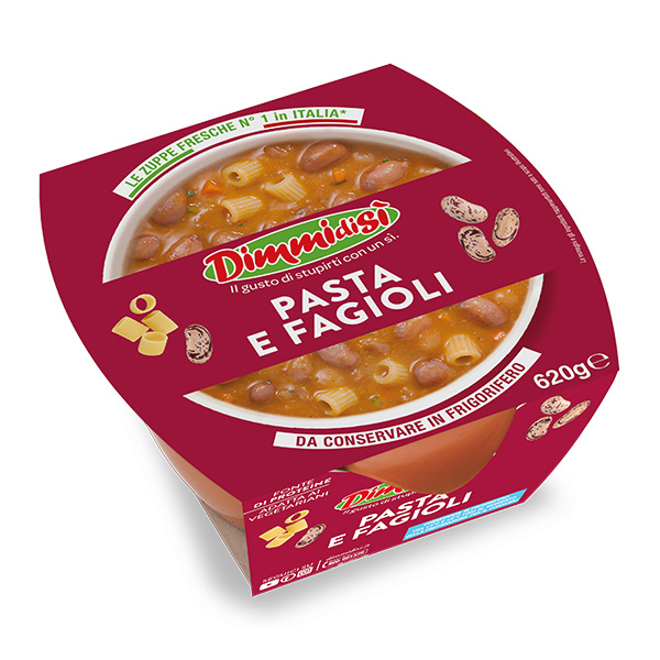 acqua, fagioli borlotti 30%, carote, pasta 5% (semola di grano duro), sedano, cipolle, olio extravergine di oliva, doppio concentrato di pomodoro, sale, piante aromatiche, spezie.