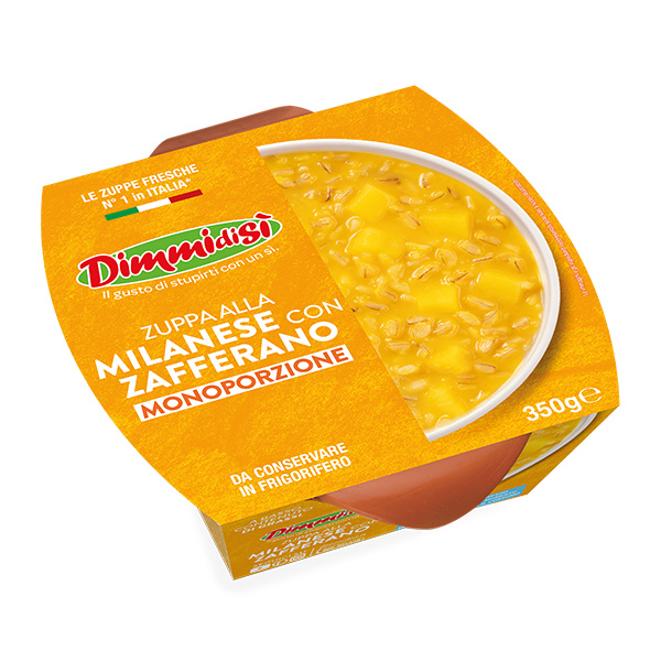 acqua, patate, riso integrale 8%, cipolla, panna (contiene latte), sale, aroma naturale, spezia, zafferano 0,01%.