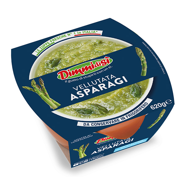 acqua, patate, asparagi 21%, bevanda di soia (acqua, semi di soia no OGM, sale), olio di oliva, porri, sale, aroma.